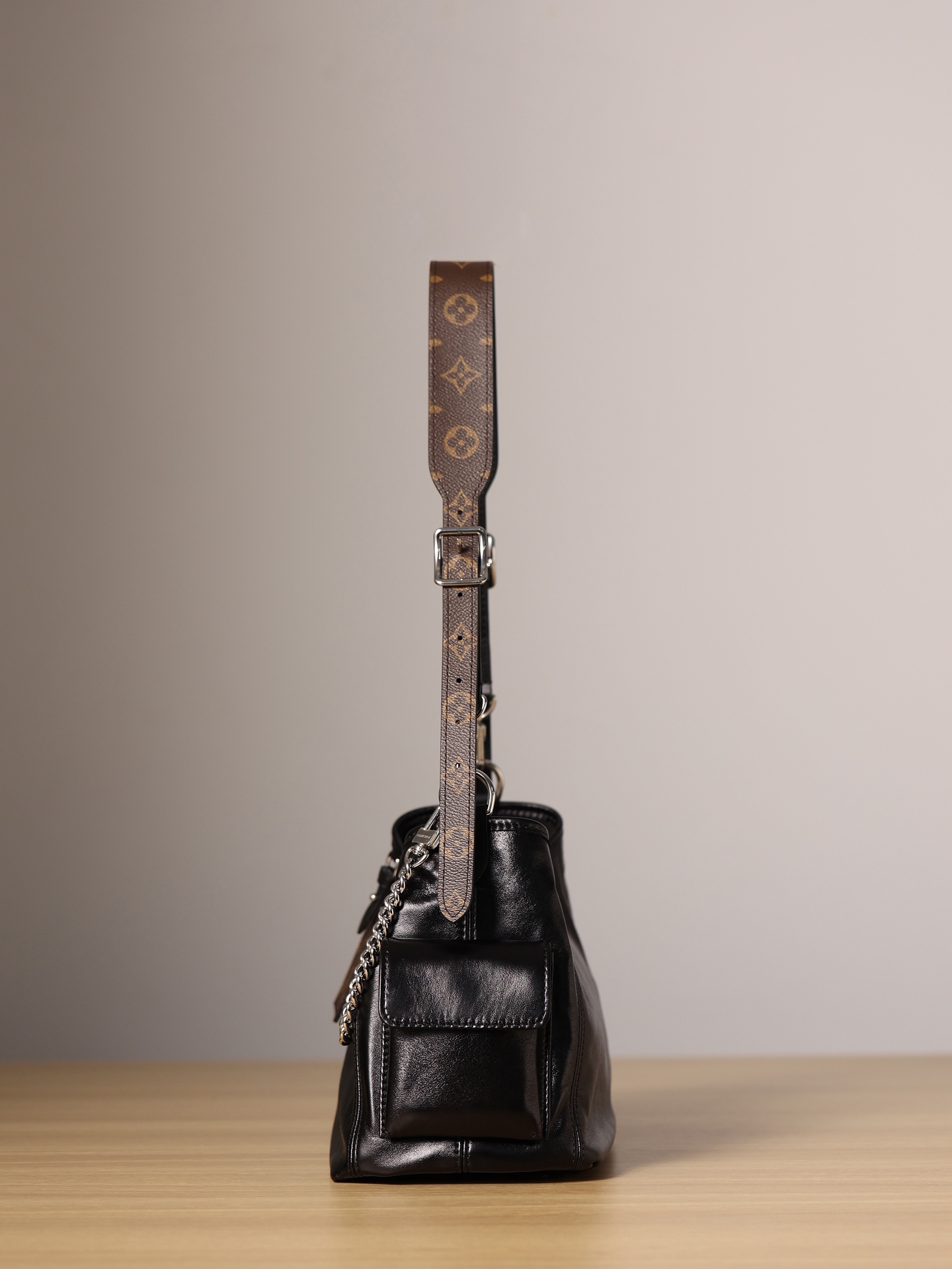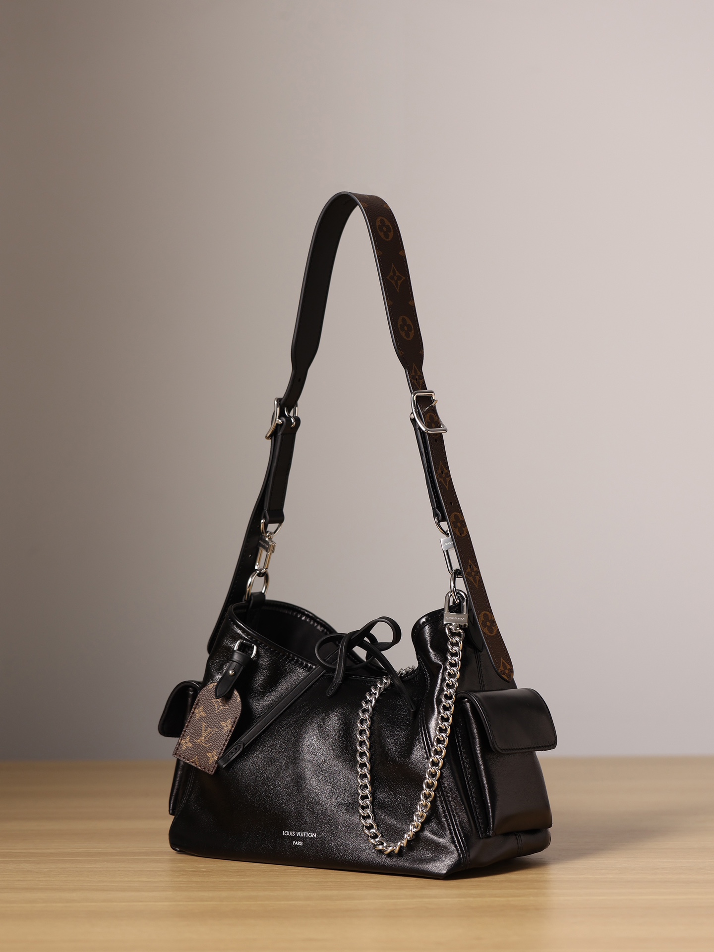 This is a replica LOUIS VUITTON M24861 CarryAll Cargo Vibe PM. ,33.5 x 23 x 15 cm ,Black,Lambskin,Cowhide leather trim,Microfibre lining,Silver-colour hardware,Zipped inside pocket,2 outer pockets,Fits 6.7-inch smartphone, Zippy wallet, tissues, lipstick, earphones, sunglasses, keys,Weight: 0.7 kg,Strap: Removable, adjustable,Strap Drop: 32.0 cm,Strap Drop Max: 48.0 cm,Chain: Removable,Chain Drop: 24.0 cm