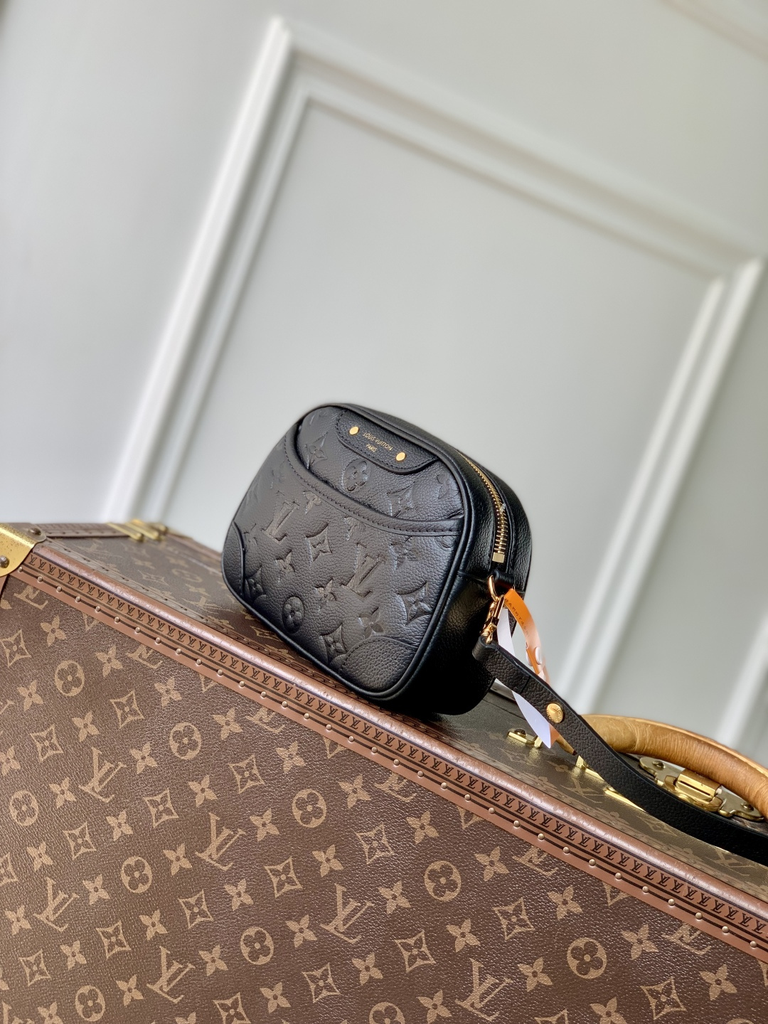 This is a replica LOUIS VUITTON M25518 Tiny Camera Bag. ,19 x 13 x 6 cm ,Black,Cowhide leather,Cowhide leather trim,Microfibre lining,Gold-colour hardware,Zip closure,1 flat front pocket,Fits smartphone, earphones, Victorine Wallet, keys,Strap: Removable, adjustable,Strap Drop: 29.0 cm,Strap Drop Max: 49.0 cm