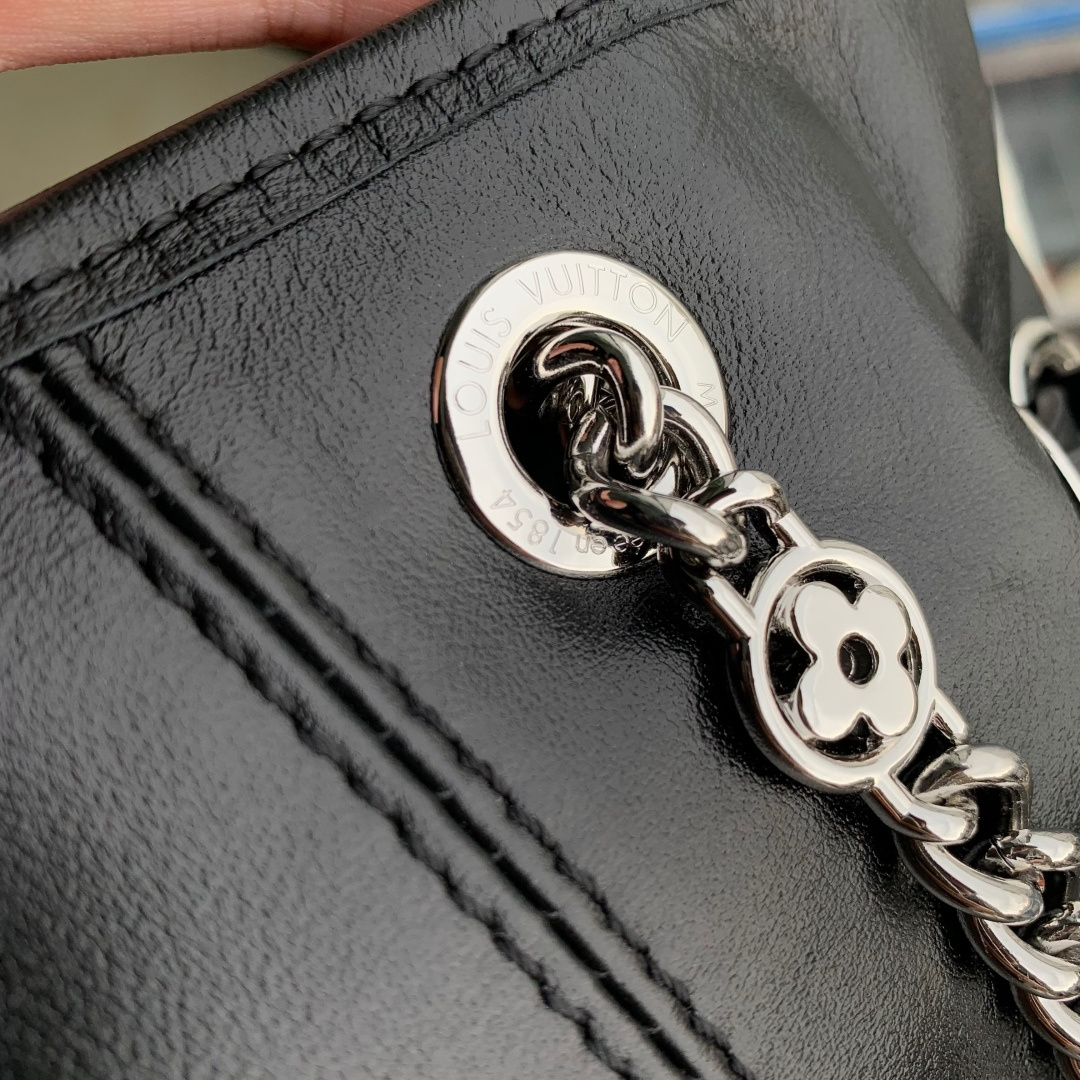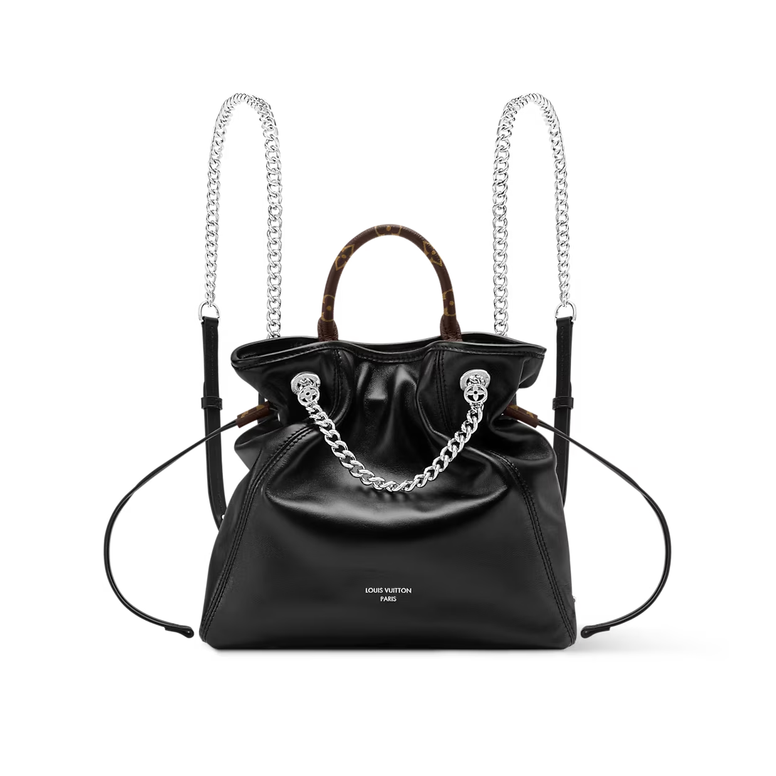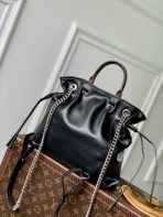 This is a replica LOUIS VUITTON M25522 Off Duty Vibe Backpack. ,24 x 25 x 10 cm ,Black,Lamb leather,Cowhide leather trim,Microfibre lining,Silver-colour hardware,1 magnetic closure,1 inside flat pocket,Fits smartphone, earphones, Compact Wallet, sunglasses, keys, lipstick,Strap: Non-removable, adjustable,Strap Drop: 39.0 cm,Strap Drop Max: 42.0 cm,Handle: Single