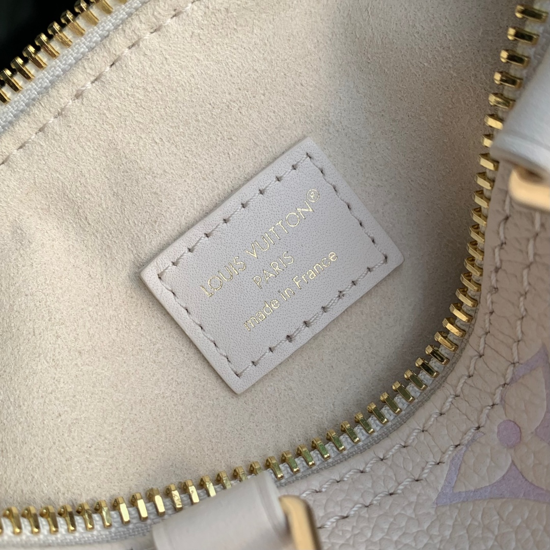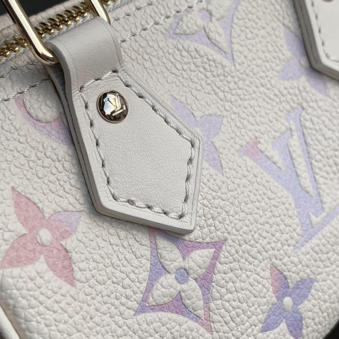 This is a replica LOUIS VUITTON M25591 ,Nano Speedy,6.3 x 3.9 x 3 inches,(Length x Height x Width),Dream Beige,Embossed grained cowhide leather,Grained cowhide-leather trim,Microfiber lining,Light gold-toned hardware,Zipper closure,Fits: smartphone, earphones, Clea wallet, keys, sunglasses, lipstick,Strap:Removable, adjustable,Strap drop:17.9 inches,Strap drop max:21.3 inches