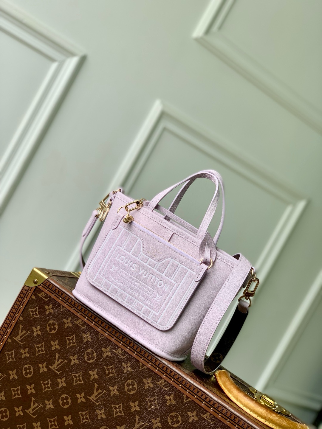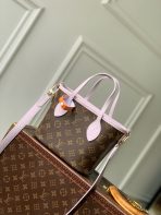 This is a replica LOUIS VUITTON M25656 Neverfull Bandoulière Inside Out BB. ,10.4 x 6.5 x 4.3 inches ,Lavender cowhide leather/Monogram Coated Canvas,Grained cowhide leather and coated canvas,Cowhide-leather trim,Gold-toned hardware,Removable zipped pouch,Hook closure,Fits: Smartphone, Rosalie Coin Purse, keys, earphones, lipstick, tissues,Weight: 0.5 kg,Strap:Removable, not adjustable,Strap drop:19.7 inches,Handle:Double