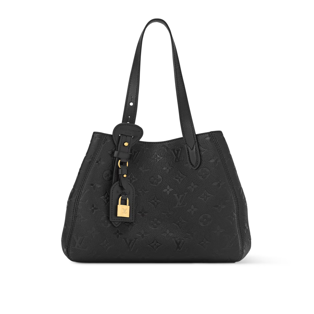 ,40 x 22 x 15 cm ,Black,Cowhide leather,Cowhide leather trim,Microfibre lining,Gold-colour hardware,Magnet and hook closure,1 decorative name tag with padlock,1 flat inside pocket,1 zipped inside pocket,Fits smartphone, Victorine Wallet, keys and lipstick,Handle: Double, removable