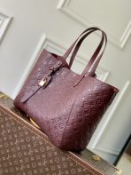 This is a replica LOUIS VUITTON M25888 All In One MM Bag.,An elegant work-to-weekend shopper, the All In One MM bag lives up to its name. It is crafted from cowhide in a signature Concerto Red palette, inspired by Louis Vuitton lipsticks. It can be styled two ways: as a round-shaped hobo bag or open tote. The versatile design is accented with a decorative LV padlock and name tag. It is generously sized to fit a laptop among other daily essentials.,