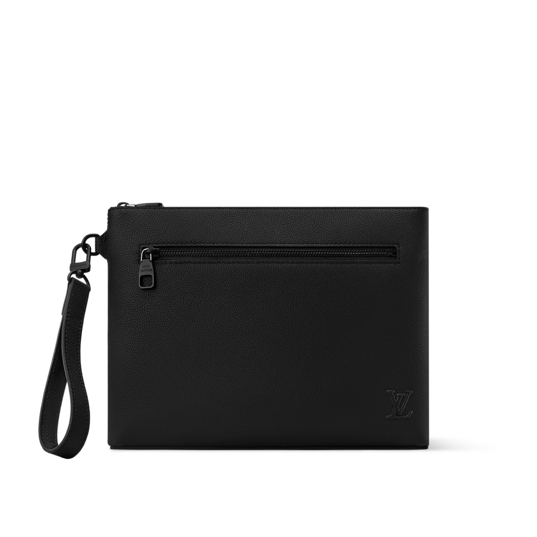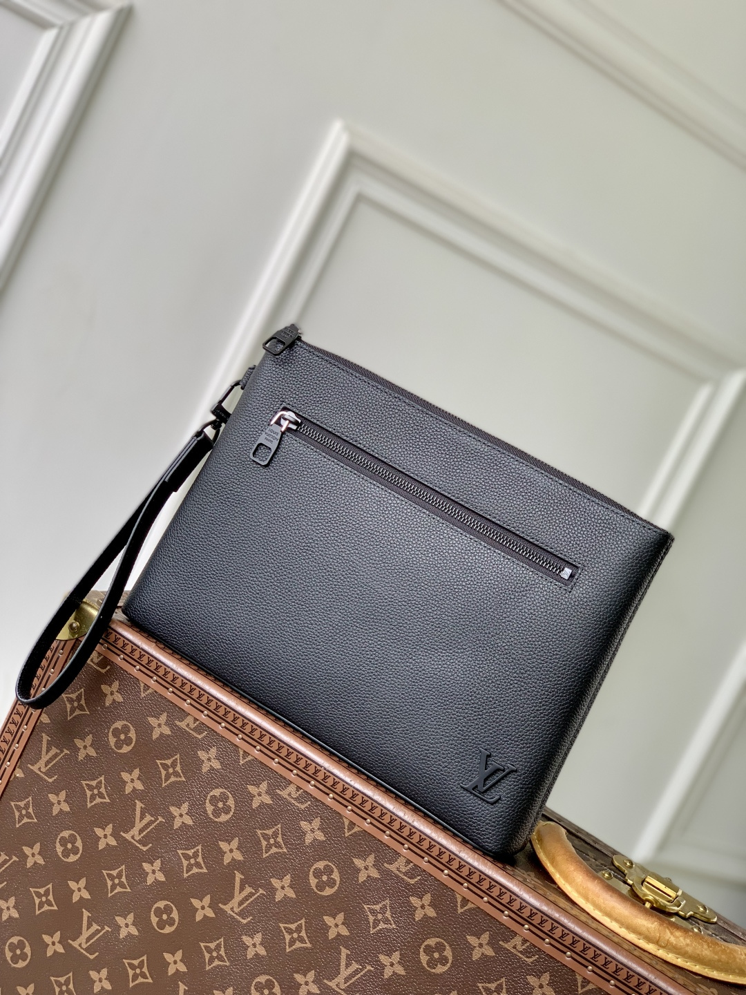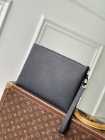 This is a replica LOUIS VUITTON M25955 Takeoff Pouch. ,30 x 22 x 5 cm ,Waxy calfskin,Waxy calfskin trim,Fits a tablet computer,Handle: Single, removable