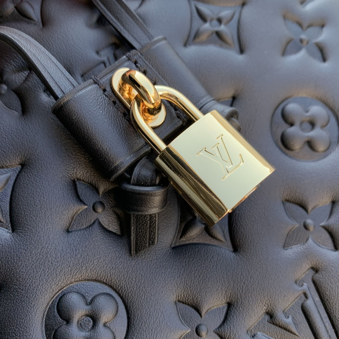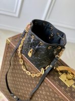 This is a replica LOUIS VUITTON M26216 Coussin Bucket. ,20 x 20 x 10 cm ,Black,Lamb leather,Cowhide leather trim,Microfibre lining,Gold-colour hardware,1 removable LV Chunky chain,Fits smartphone, earphones, Victorine wallet, keys, lipstick,Strap: Removable, adjustable,Strap Drop: 67.0 cm,Strap Drop Max: 116.0 cm,Chain: Removable,Chain Drop: 50.0 cm,Handle: Single