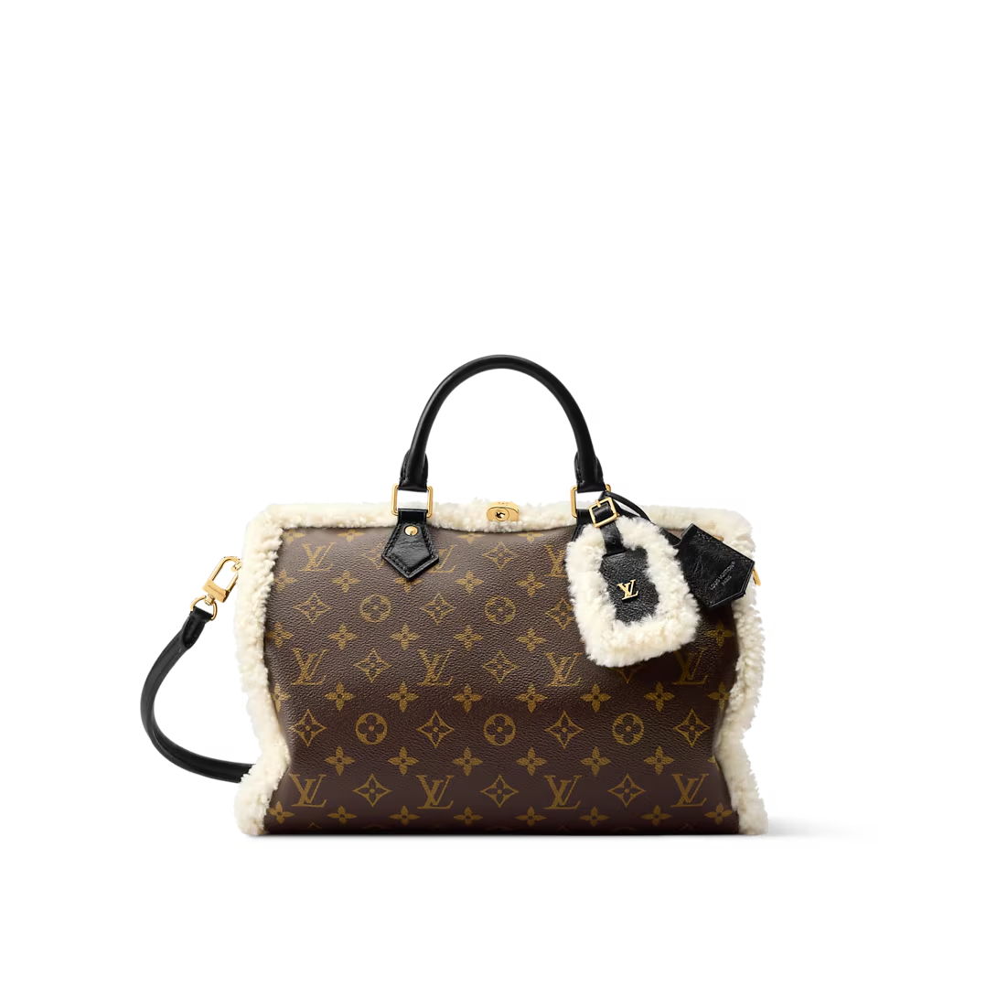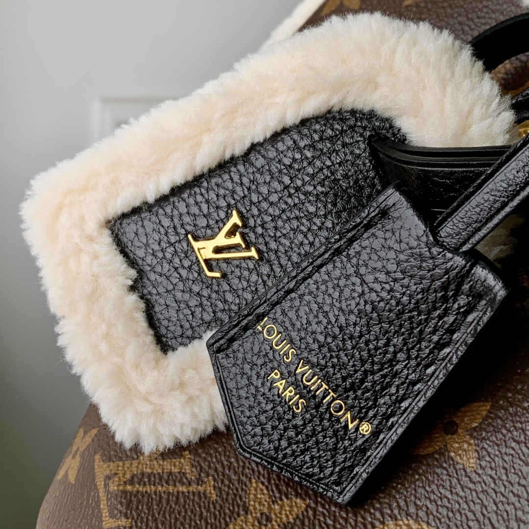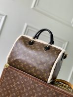 This is a replica LOUIS VUITTON M26326 Speedy Soft 30 Teddy,. ,30 x 21 x 17 cm ,Monogram shearling,Coated canvas and shearling,Leather trim,Leather lining,Aged gold-colour hardware,Double zip closure,1 inside zipped pocket,1 name tag,Fits 6.7-inch smartphone, earphones, Zippy long wallet, keys, lipstick,Strap: Removable, non-adjustable,Strap Drop: 24.0 cm,Handle: Single x2