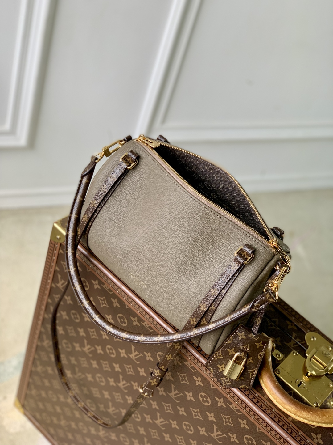 This is a replica LOUIS VUITTON M26360 Express PM Bag. ,26 x 17 x 13.5 cm ,Smoke Grey,Calfskin,Coated canvas trim,Cotton lining,Gold-colour hardware,Double zip closure,Removable key bell with removable padlock (can be placed on the zip pulls),Strap: Removable, adjustable,Strap Drop: 41.0 cm,Strap Drop Max: 47.0 cm,Handle: Single x2