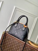 This is a replica LOUIS VUITTON M26409 Alma BB. ,23.5 x 17.5 x 11.5 cm ,Black,Cowhide leather,Cowhide leather trim,Microfibre lining,Gold-colour hardware,Zip closure with padlock and keys,1 key bell,1 flat inside pocket,4 protective metal base feet,Fits smartphone, earphones, Compact Wallet, sunglasses,Strap: Removable, adjustable,Strap Drop: 50.0 cm,Strap Drop Max: 62.0 cm,Handle: Single x2
