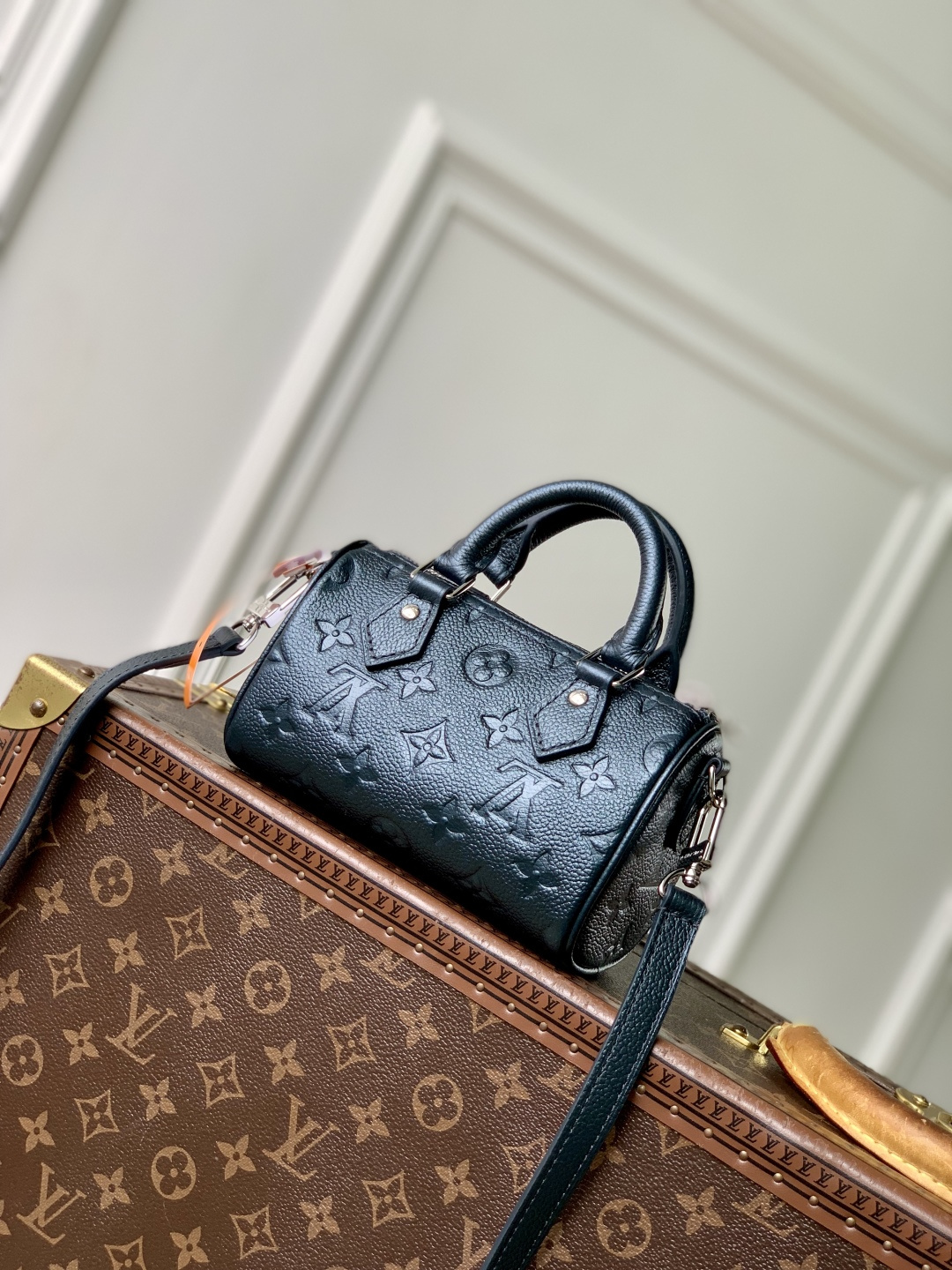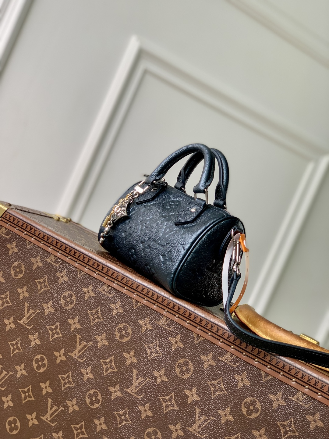 This is a replica LOUIS VUITTON M26510 Nano Speedy. ,16 x 10 x 7.5 cm ,Shimmery Ink,Cowhide leather,Cowhide leather trim,Microfibre lining,Silver-colour hardware,Zip closure,1 removable charm in a gold, silver-colour and ruthenium finish,Fits Rosalie Coin Purse, sunglasses, earphones, keys, 6.7-inch smartphone, lipstick,Strap: Removable, adjustable,Strap Drop: 45.5 cm,Strap Drop Max: 54.0 cm,Handle: Double