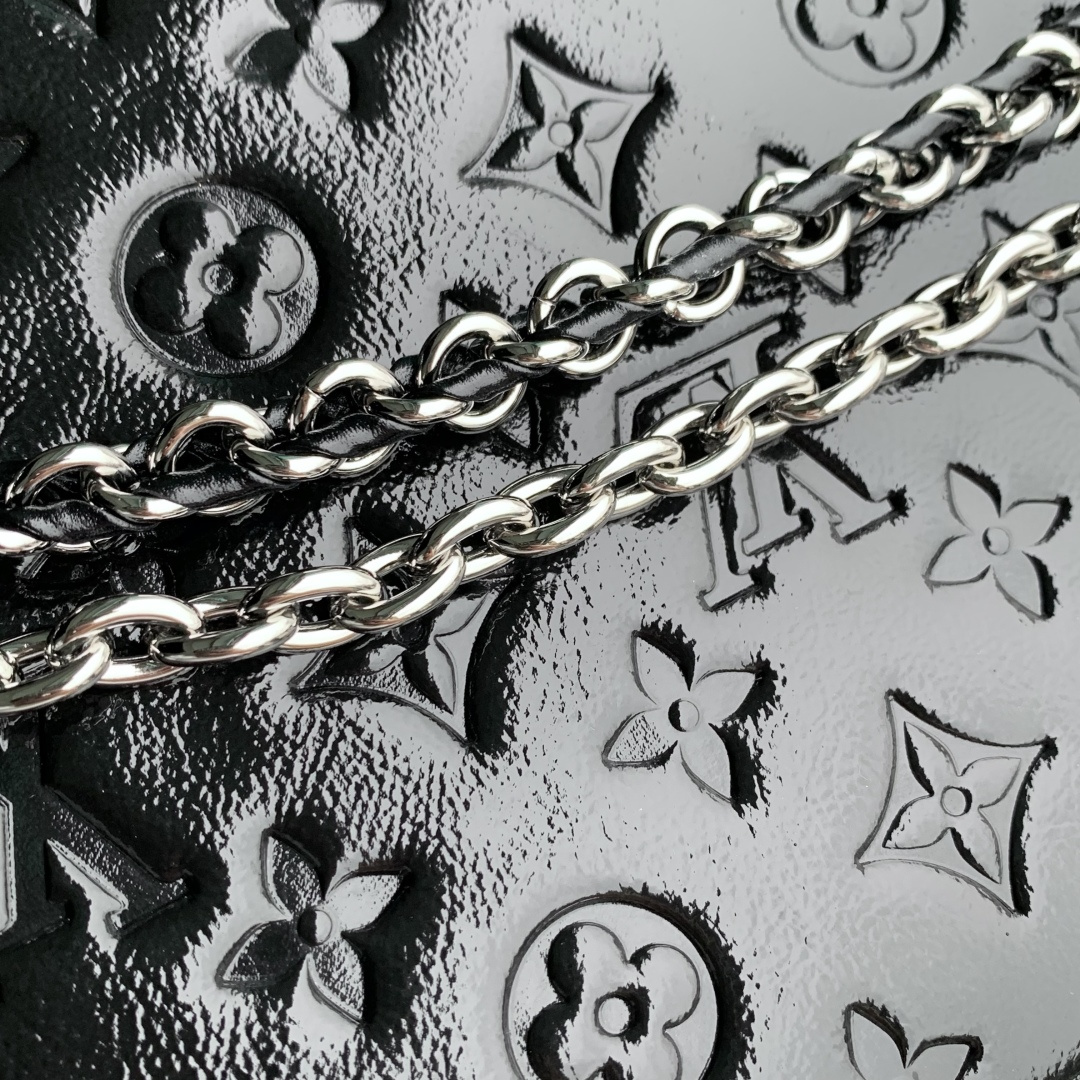 This is a replica LOUIS VUITTON M28137 Trunkie Bag. ,27 x 16 x 8 cm ,Black,Calfskin,Cowhide leather trim,Microfibre lining,Silver-colour hardware,Flap closure with S-lock clasp,Inside zipped pocket,Chain: Non-removable,Chain Drop: 28.0 cm