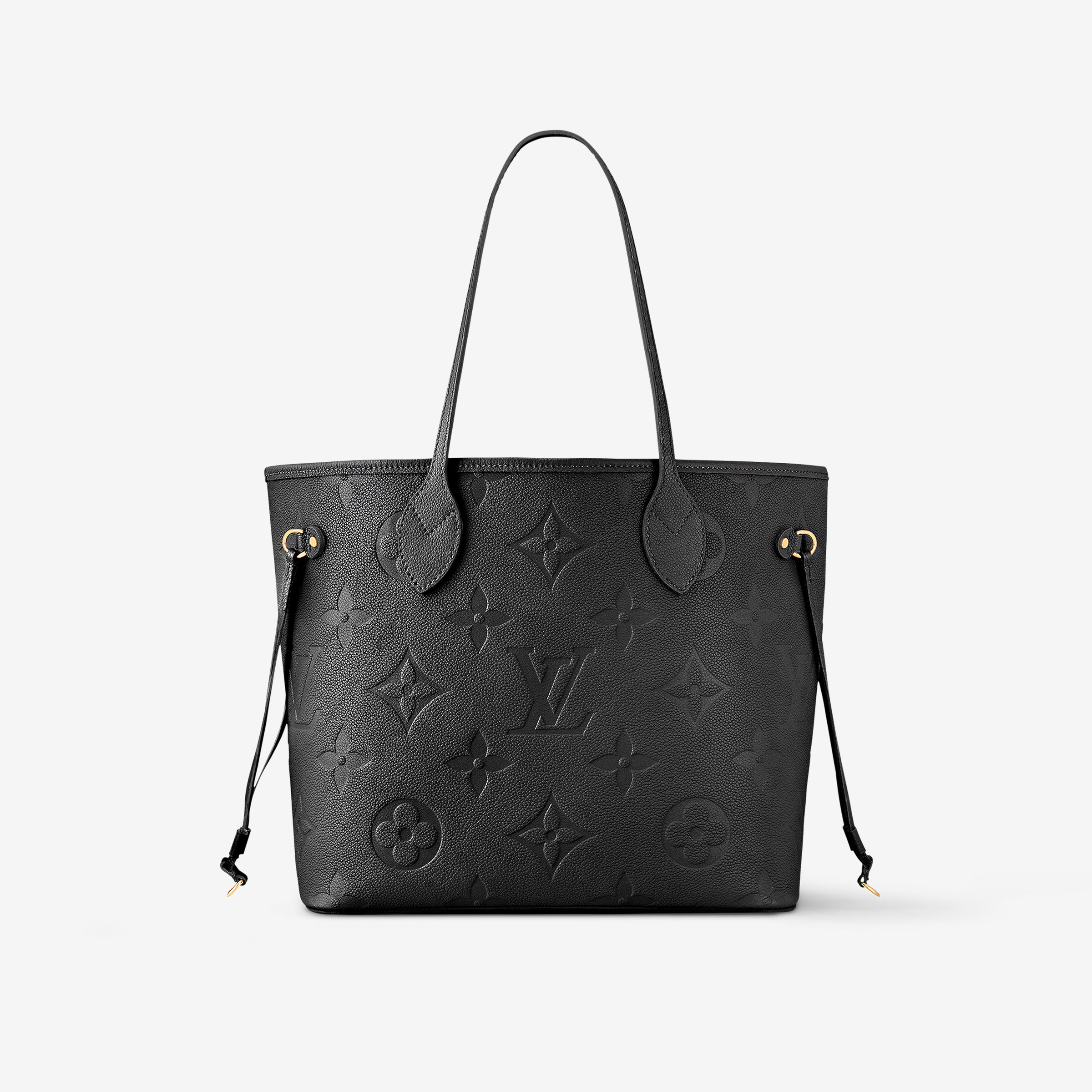 This is a replica LOUIS VUITTON M45685 Neverfull MM. ,12.2 x 11 x 5.5 inches ,Black,Embossed cowhide leather,Cowhide-leather trim,Microfiber lining,Gold-color hardware,Hook closure,Inside zipped pocket,4 side laces,Fits: 13-inch laptop, Smartphone, keys, Zippy wallet and earphones,Weight: 0.9 kg,Handle:Double