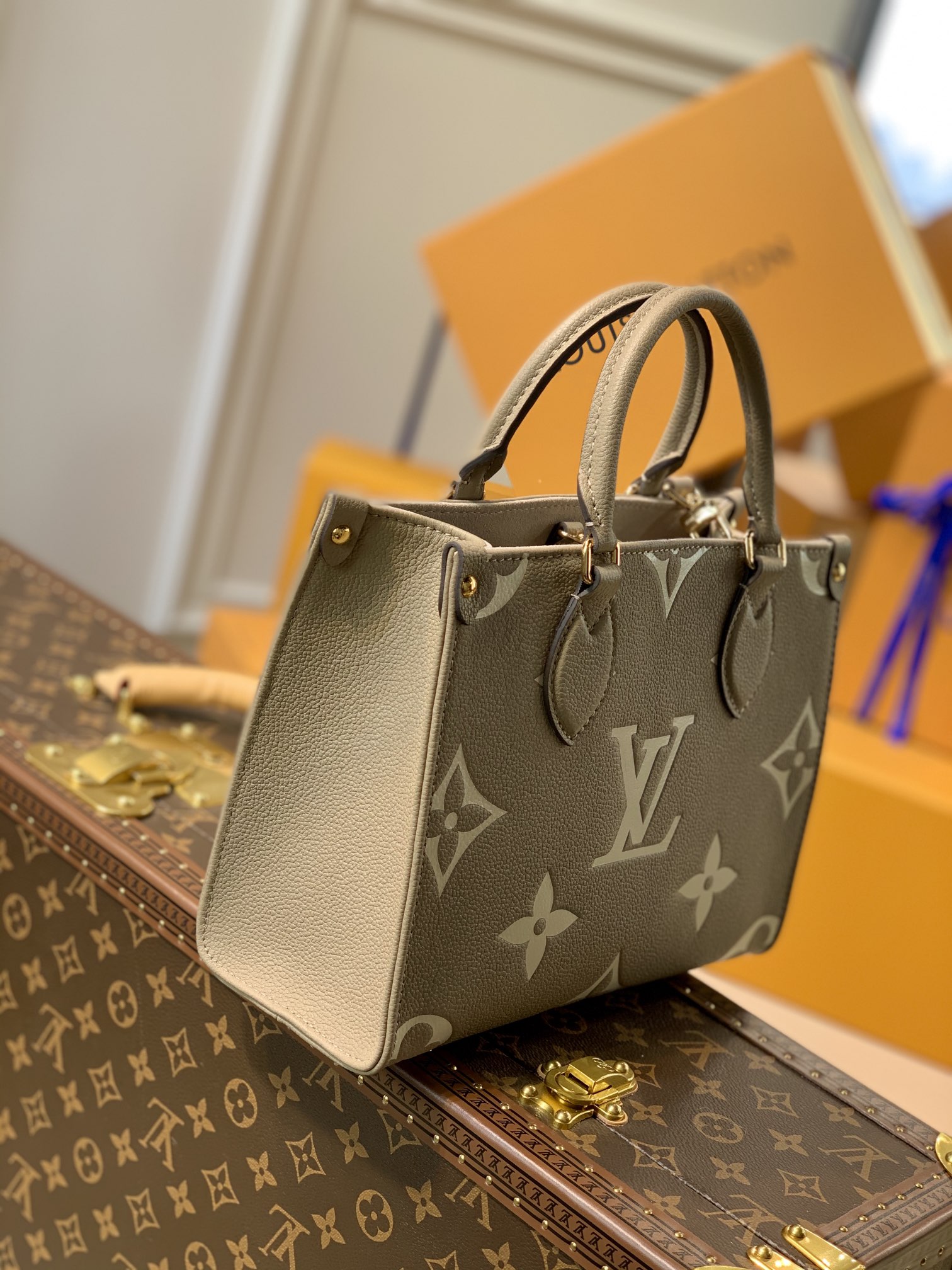 This is a replica LOUIS VUITTON M45779 OnTheGo PM. ,9.8 x 7.5 x 4.5 inches ,Tourterelle Beige/Cream,Embossed grained cowhide leather,Grained cowhide leather trim,Microfiber lining,Gold-color hardware,Inside flat zipped pocket,Inside double pocket,4 riveted corner tabs,Fits: 13-inch laptop, smartphone, keys, Zippy wallet and earphones,Weight: 0.6 kg,Strap:Removable, adjustable,Strap drop:18.9 inches,Strap drop max:20.5 inches,Handle:Double