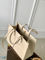 This is a replica LOUIS VUITTON M46531 OnTheGo MM. ,13.8 x 10.6 x 5.5 inches ,Crème Beige,Embossed grained cowhide leather,Grained cowhide-leather trim,Microfiber lining,Gold-color hardware,Inside flat zipped pocket,Inside double pocket,2 long leather shoulder straps (drop: 24 cm),Fits: 13-inch laptop, smartphone, keys, Zippy Long Wallet, earphones,Handle:Double