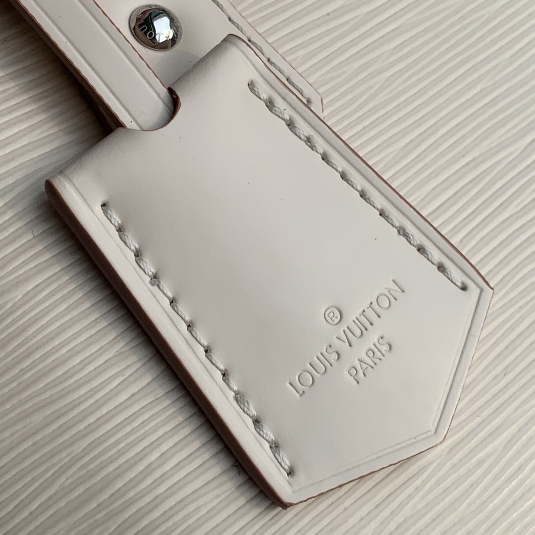 This is a replica LOUIS VUITTON M58706 Alma BB. ,9.3 x 6.9 x 4.5 inches ,Quartz White,Epi grained cowhide leather,Epi-leather trim and Jacquard strap,Microfiber lining,Silver-color hardware,Double zip closure,Padlock,Key bell,Inside flat pocket,4 protective metal bottom studs,Fits: 6.7-inches smartphone, earphones, lipstick, tissues, keys, sunglasses,Strap:Removable, not adjustable,Strap drop:19.7 inches,Handle:Double