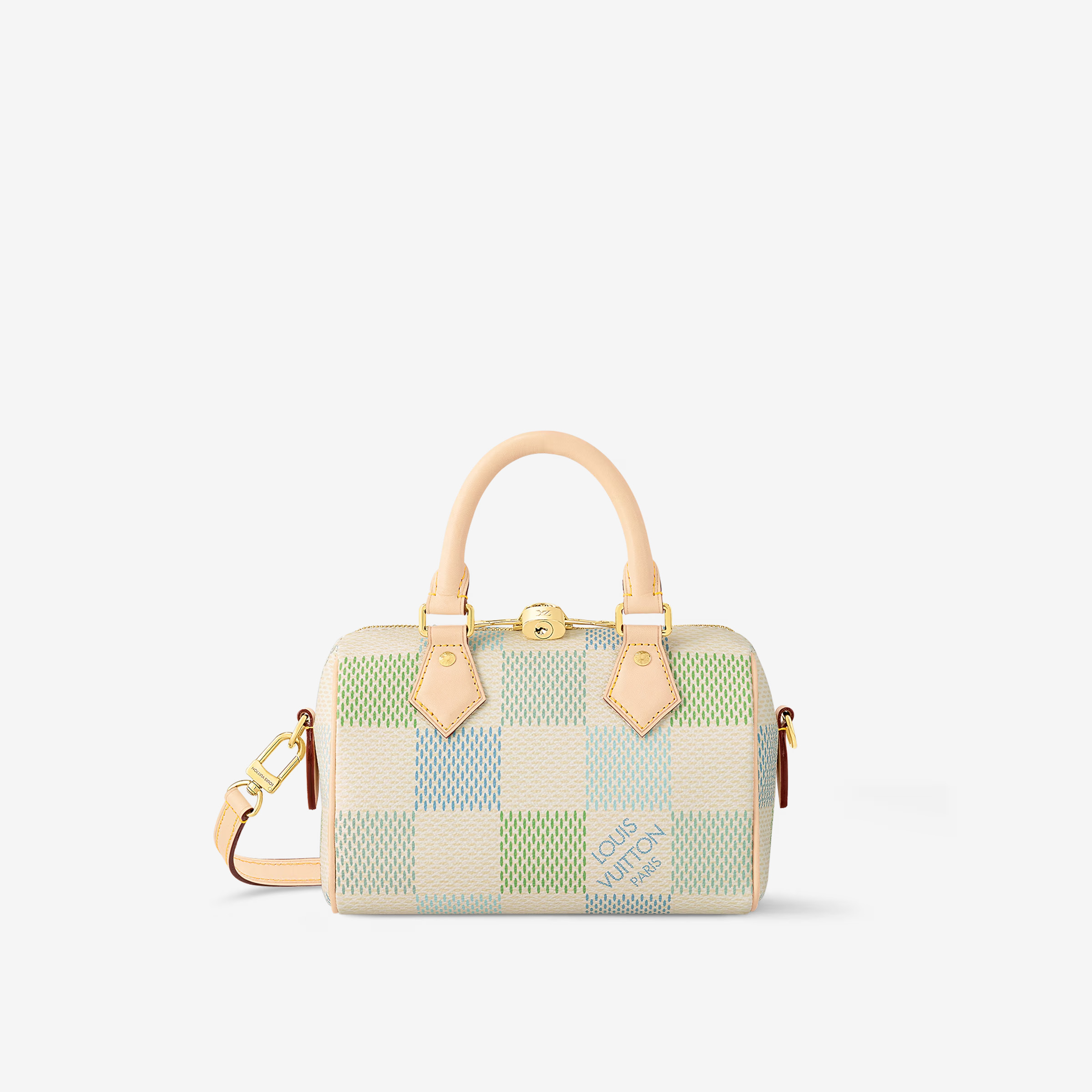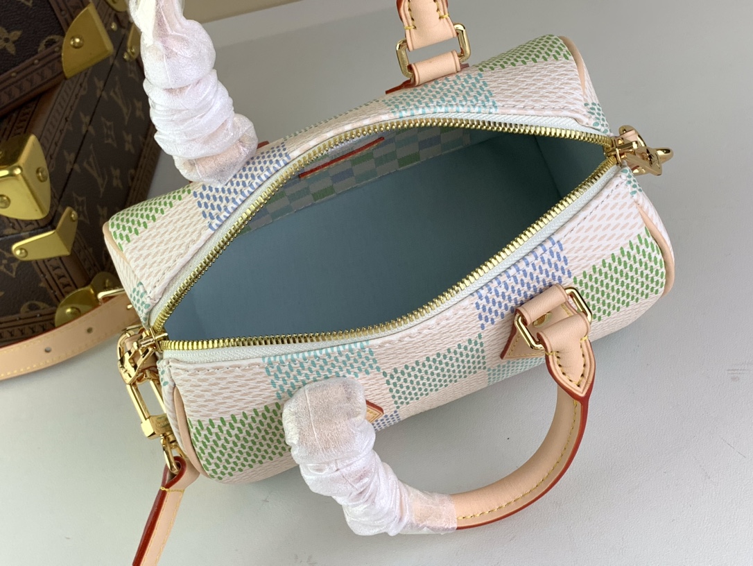 This is a replica LOUIS VUITTON N40515 ,7.9 x 5.9 x 4.9 inches ,Pistachio,Damier Giant coated canvas,Cowhide-leather trim,Twill lining,Gold-color hardware,Double zip closure,Printed flat inside pocket,Padlock,Fits: smartphone, compact wallet, earphones, and keys,Strap:Removable, adjustable,Strap drop:18.9 inches,Strap drop max:20.9 inches,Handle:Double