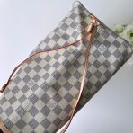 This is a replica LOUIS VUITTON N40602 ,15.4 x 12.6 x 7.5 inches ,Beige,Damier Azur coated canvas,Natural cowhide-leather trim,Striped textile lining,Gold-color hardware,4 side laces,Hook closure,Flat, textile-lined zipped inside pocket,Removable zipped pouch,D-ring,Fits: 15-inch laptop, 13-inch tablet, smartphone, Zippy Long Wallet, book, sunglasses, lipstick, keys, tissues,Handle:Double