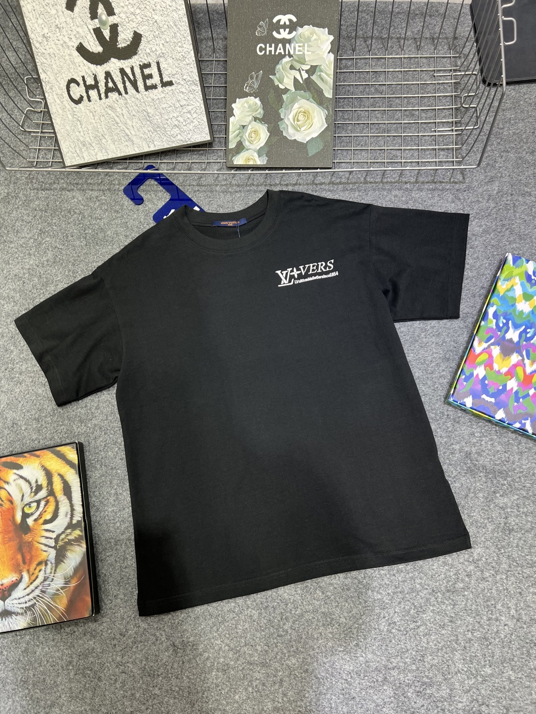 Lv monogram flocked print back logo cotton t-shirt
