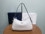 This is a replica Prada Aimée 1BC229 medium leather shoulder bag. ,Leather handle,Removable key holder,Metal hardware,Enamelled metal triangle logo on the front,Zipper closure,Nappa leather interior with two pockets, including one with zipper closure,Height: 18cm,Width: 31cm,Length: 10cm