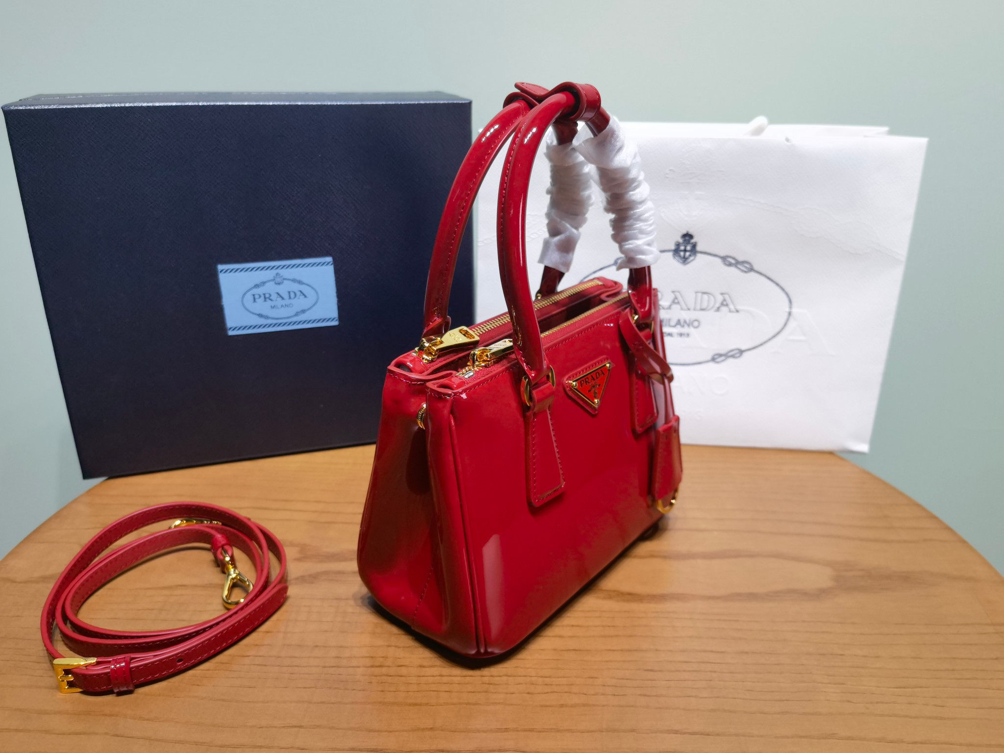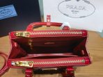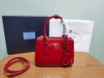 This is a replica Prada Galleria 1BA906 Saffiano leather mini-bag. ,Leather handles,Detachable, adjustable leather shoulder strap. Max. length: 120 cm – Min. length: 110 cm – Max. drop length: 60 cm – Min. drop length: 55 cm,Removable leather key ring,External zipper pockets,Metal hardware,Leather triangle with metal lettering logo on the front,Snap closure on the sides,Logo-print nylon lining with two pockets, including one with zipper,With purse feet,Height: 14.5cm,Width: 20cm,Length: 9.5cm