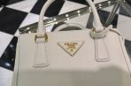 This is a replica Prada Galleria 1BA906 Saffiano leather mini-bag. ,Leather handles,Detachable, adjustable leather shoulder strap. Max. length: 120 cm – Min. length: 110 cm – Max. drop length: 60 cm – Min. drop length: 55 cm,Removable leather key ring,External zipper pockets,Metal hardware,Leather triangle with metal lettering logo on the front,Snap closure on the sides,Logo-print nylon lining with two pockets, including one with zipper,With purse feet,Height: 14.5cm,Width: 20cm,Length: 9.5cm