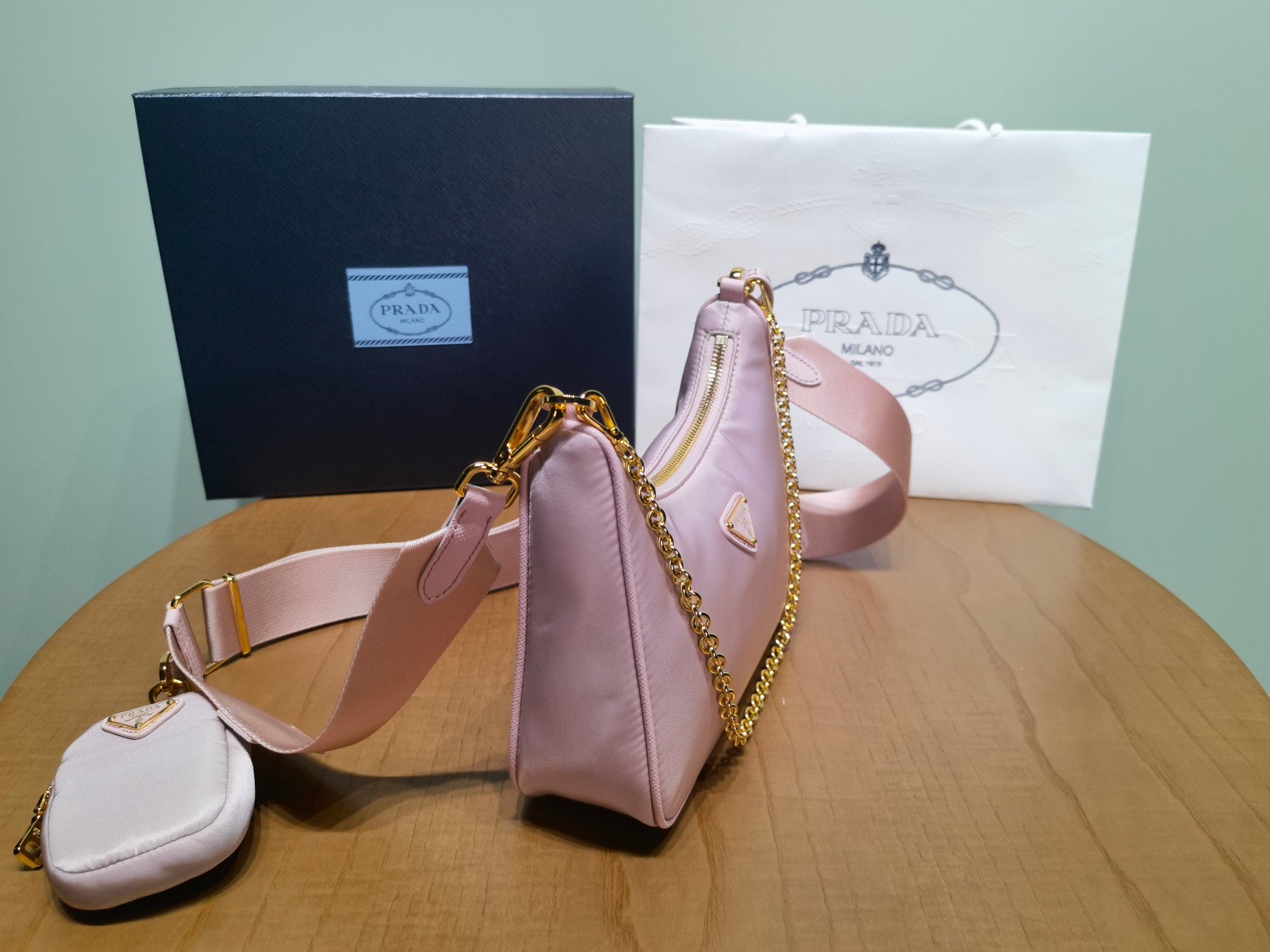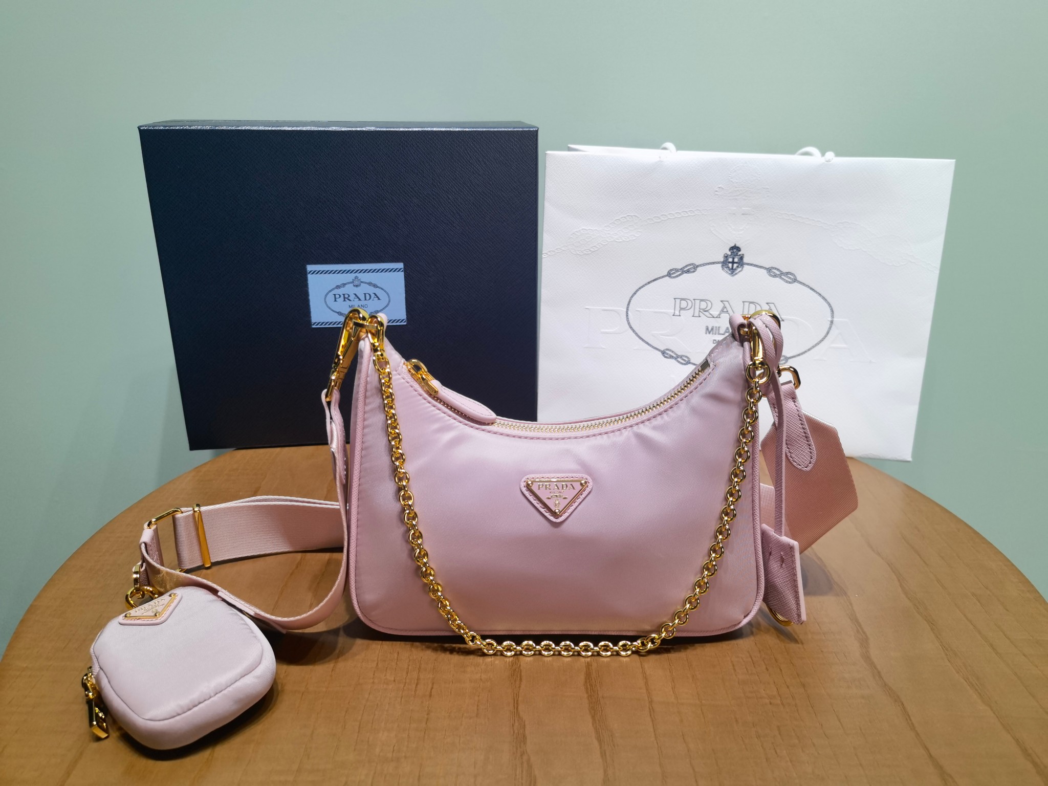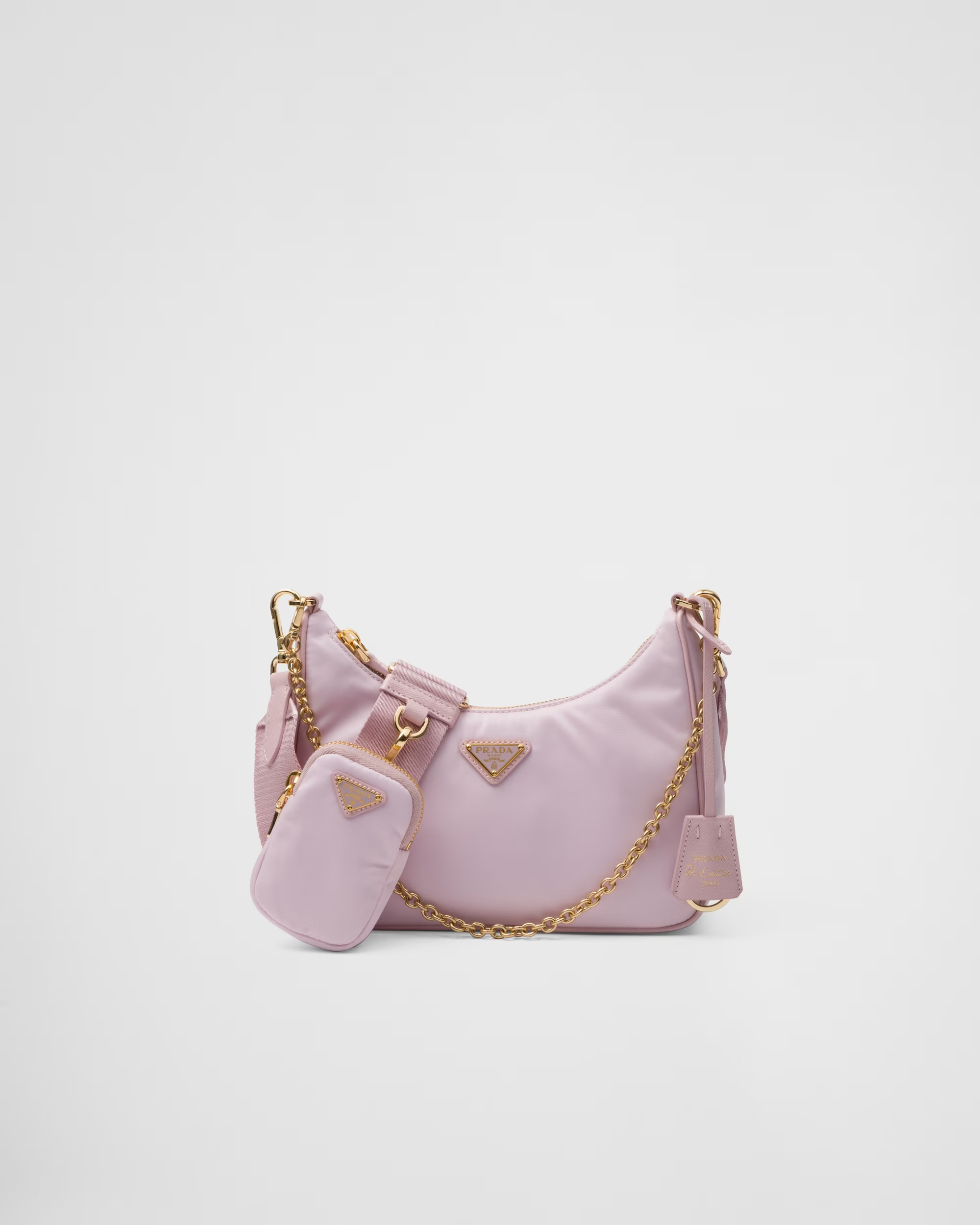 This is a replica Prada Re-Edition 1BH204 2005 Re-Nylon bag. ,Saffiano trim,Removable chain handle,Detachable adjustable 85 cm logo-print woven nylon shoulder strap,Removable Re-Nylon zipper pouch with Re-Edition keychain,Metal hardware,Enameled metal triangle logo on the front,Zipper closure,Re-Nylon logo lining,Height: 18cm,Width: 22cm,Length: 6cm