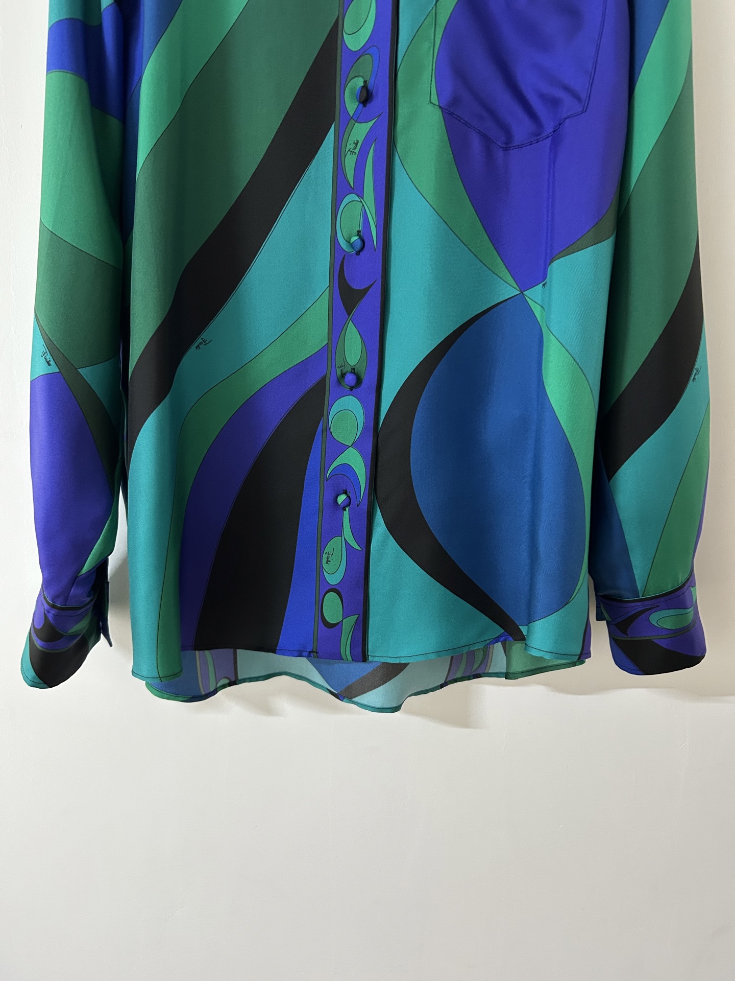 Be the first to review “PUCCI emerald green geometric print silk shirt 333332”