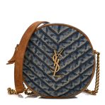 SAINT LAURENT Denim Quilted Monogram Round Crossbody Bag Rodeo Blue 1