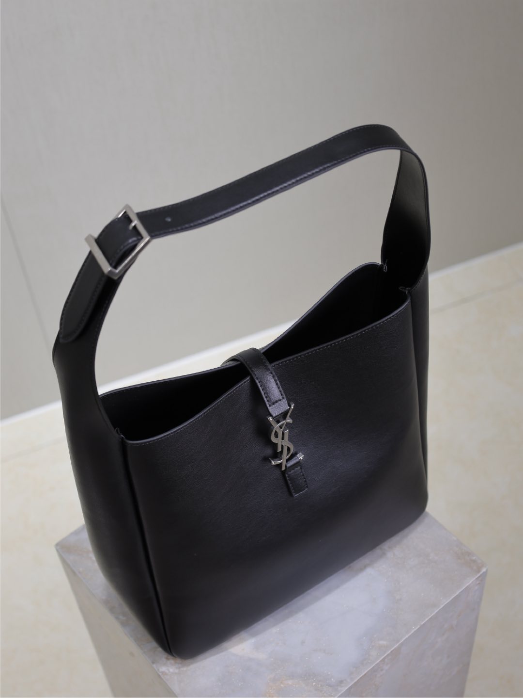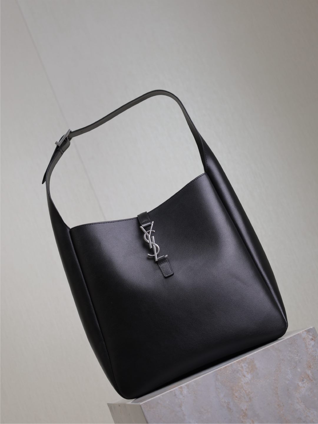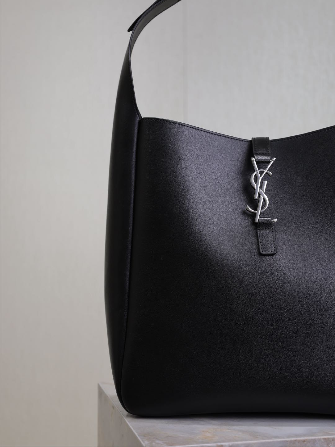 This is an replica SAINT LAURENT Large version of the iconic 5 À 7 in grained leather.,
