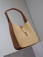 This is an replica SAINT LAURENT small version of the iconic 5 À 7 in raffia and vegetable-tanned leather.,